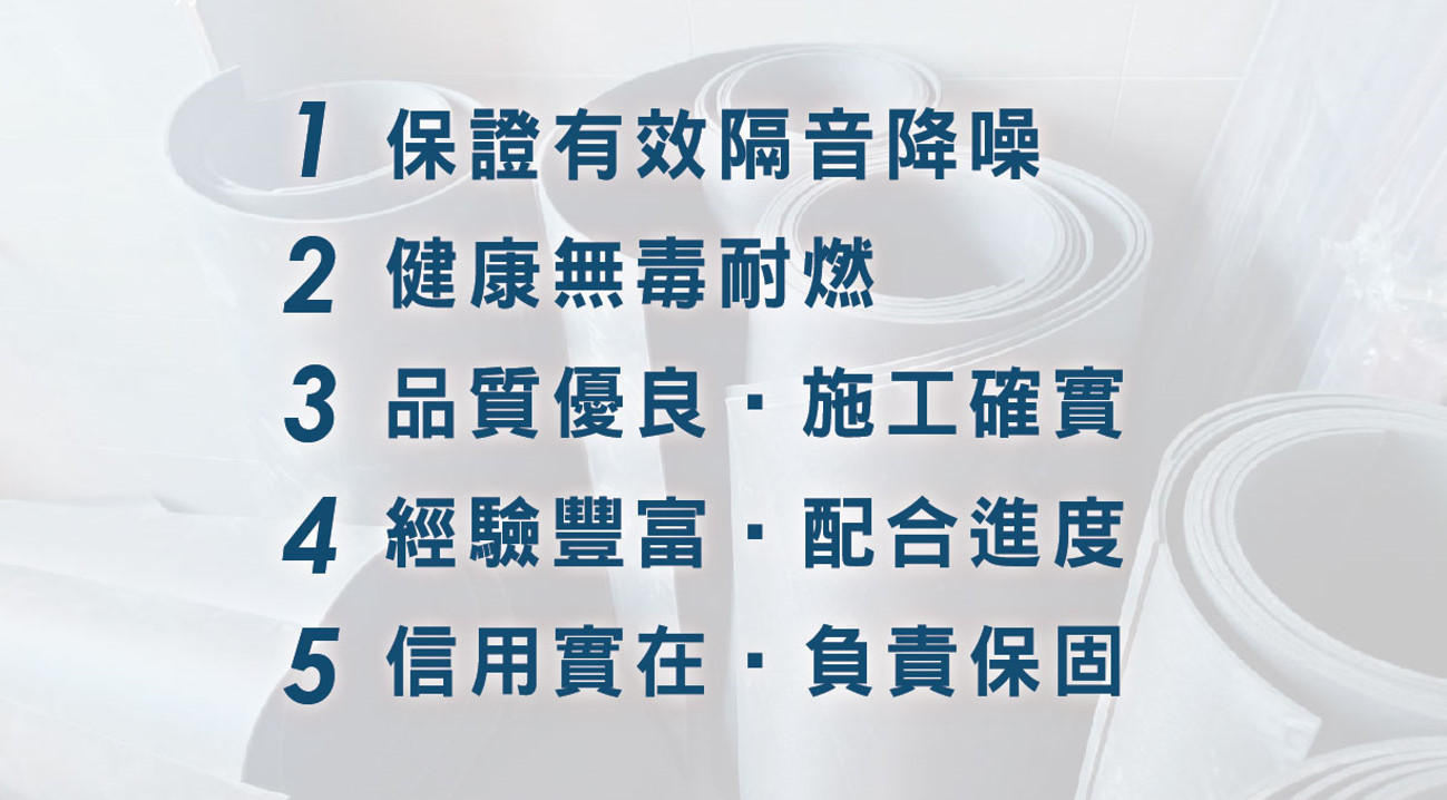 靜音科技樓地板隔音墊全系統五大保證: 1.保證有效隔音降噪2.健康無毒耐燃3.品質優良施工確實4.經驗豐富配合進度,5信用實在負責保固